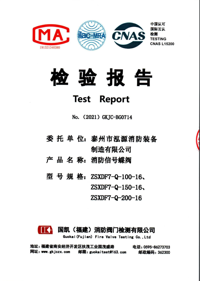 啟真對(duì)夾消防信號(hào)蝶閥ZSXDF7-Q檢驗(yàn)報(bào)告